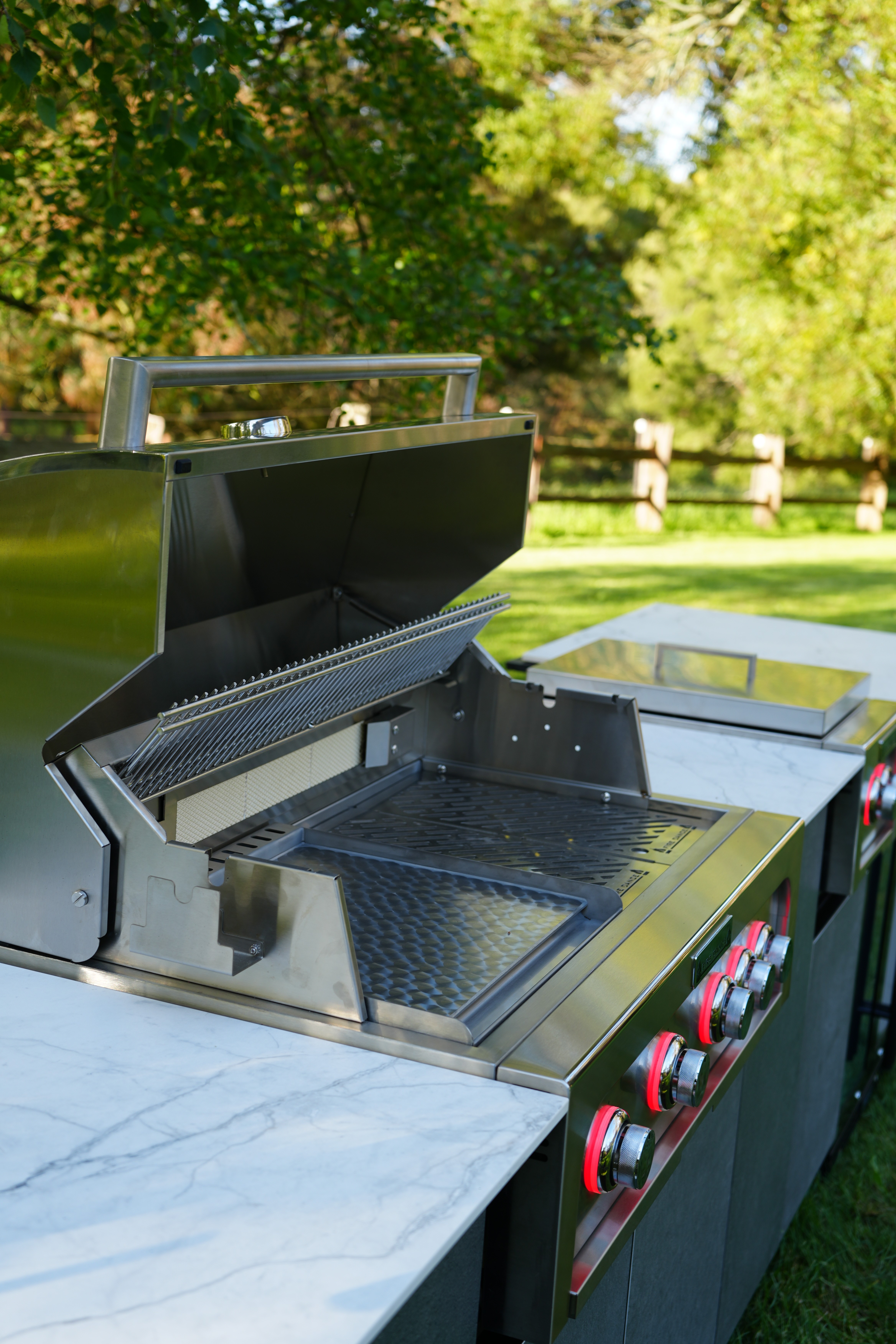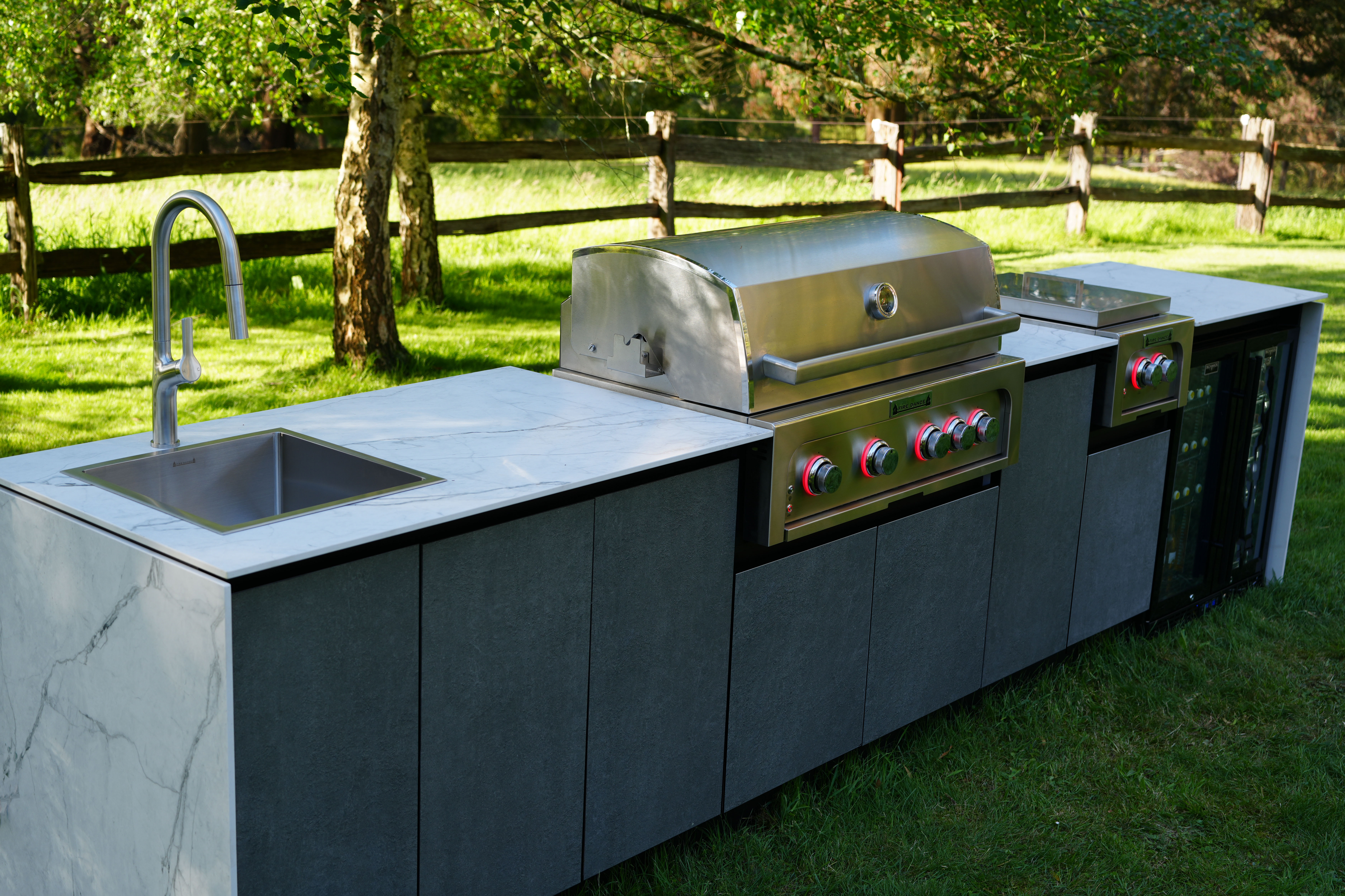 While many modular outdoor kitchen brands reduce costs by pairing cabinetry with low grade BBQs, Fire Dance takes the opposite approach. Every kitchen is equipped with premium grills and superior materials, delivering exceptional performance, longevity and luxury. This commitment to quality sets a new benchmark for high end outdoor kitchens, combining refined design with uncompromising craftsmanship. Scroll down to explore the materials, finishes and features that set Fire Dance apart.